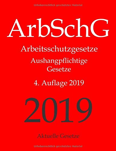 Kundenrezensionen ArbSchG Arbeitsschutzgesetze ~ Hier sind alle wichtigen aushangpflichten Gesetze enthalten vom Gesundheitsschutz über Mutterschutz bis hin zur Unfallverhütung Für den kleinen Preis ist diese Ausgabe ein absolutes Hit da alternative Ausgaben einiges mehr kosten und wir als kleine Firma nicht gerade viel Geld für sowas haben